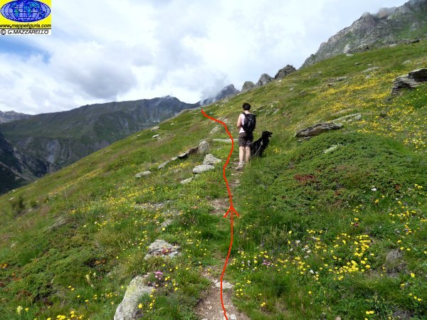 Il bivio dove si lascia a destra il sentiero per il Colle Bondormir